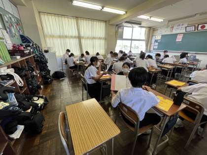 2限 英語 「When is your birthday?」 ※ペアになって質問し合っています。