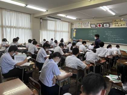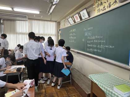 ※ノートの点検後、先生からプリントの解説を聞いています。