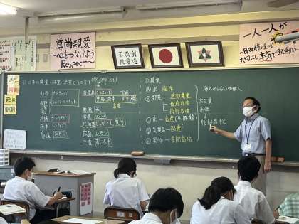 2限 社会 「日本の農業は後継者や高齢化の問題があります」