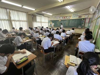 3限 国語 「この作品のテーマを読み取ってみよう。ノートにたくさん書いてみて」