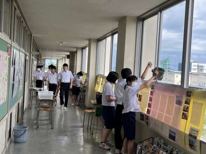 7月22日(金) 今日は1学期終業式です。 公開日 2022/07/22 更新日 2022/07/22 今日の興南中 7月22日(金) 今日は1学期の最終日。朝から大掃除。みんな一生懸命に掃除しています。 この後、体育館に入場して終業式を行い、教室に戻って学活です。 1学期をよい形で締めくくりましょう。