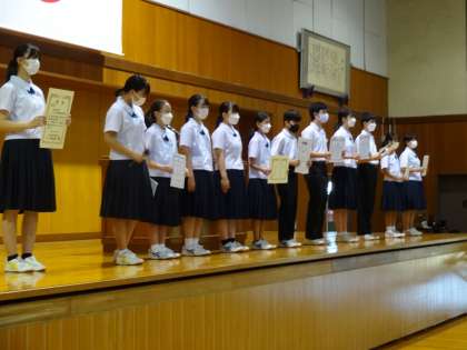 受賞報告集会 その1 公開日 2022/07/25 更新日 2022/07/25 今日の興南中 7月22日(金) 1学期中に表彰を受けた部や個人の受賞報告集会を行いました。 (写真上:体操部やクラブチーム、その他個人での受賞者) (写真下:柔道部)