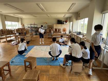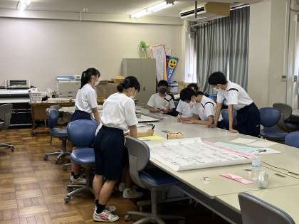 夏休みに入って1日目の午後、学校では体育大会に向けて、実行委員、団リーダー、デコレーション委員の活動が行われました。