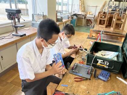 ロボコン部はコンテストに向けて各自工夫をしながら製作をしています。