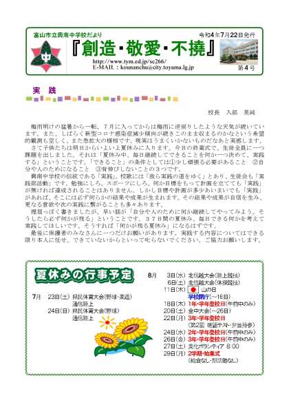 7月22日(金)に「学校だより4号」を配布しました。