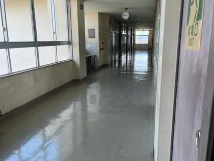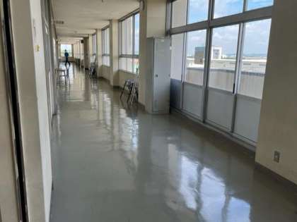 今日の午前中、4F廊下に清掃業者の方がワックスがけをしてくださいました。