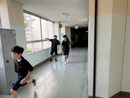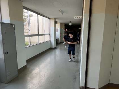 廊下でステップの練習をしています。