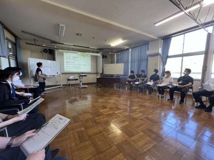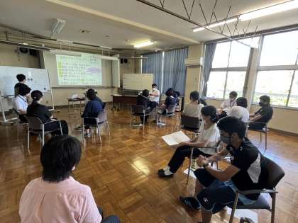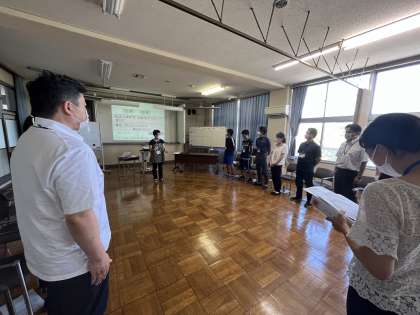 先生方の勉強会 公開日 2022/08/01 更新日 2022/08/02 今日の興南中 7月29日(金) 13:30 講師の先生をお招きして、興南中の先生方が「人間関係作りプログラム」の体験会を受講しました。講師の先生の巧みな話術や楽しいプログラムによって、先生方も中学生になったような気分で講習を受けることができました。 このような先生方の勉強会は夏休み中にしかできないので、今後の学級づくりや授業に生かせるとても貴重な研修の時間となりました。