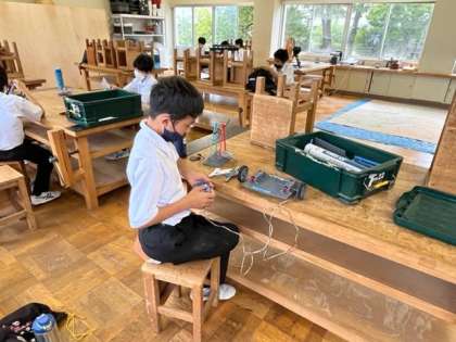 写真:ロボコン部 動かして試行錯誤しながら、製作しています。