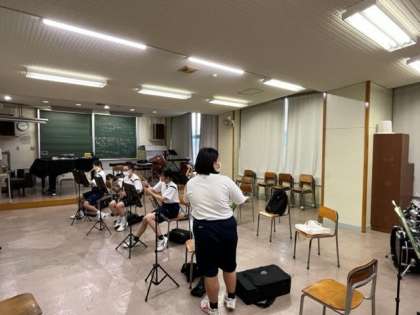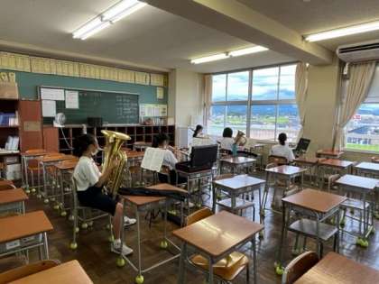 写真:吹奏楽部 パートごとに別々に練習しています。