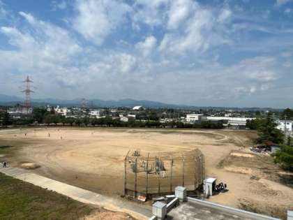 写真:夏空の下、グラウンドでがんばっている部活動