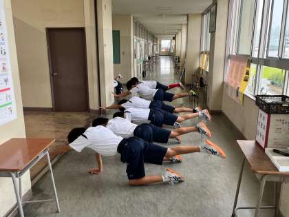 あいにくの雨模様でグラウンドが使えませんが、元気に部活動に励んでいます。