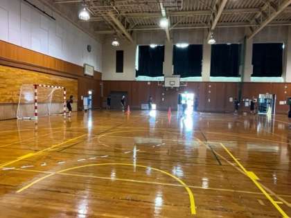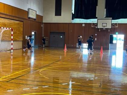 写真:ハンドボール部は午後から体育館全面を使って練習しています。
