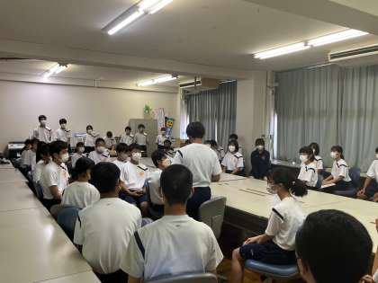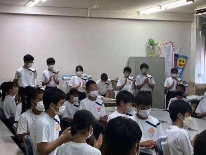 今日の団活動の反省会の様子です。進捗状況や反省が各団から報告されました。明日以降の活動に生かしてほしいです。
