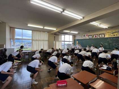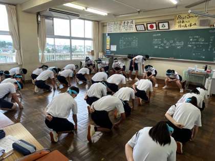 登校日の後半、3年生は体育大会の各団に分かれで団活動を行っています。