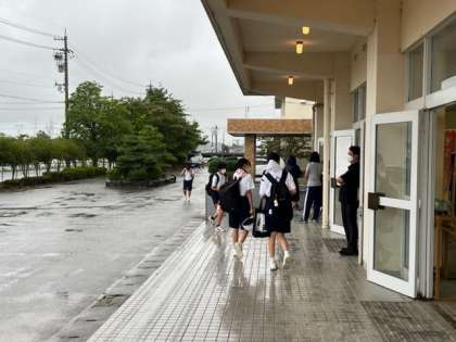 朝から雨模様ですが、生徒は元気に登校しています。今日の体育大会予行練習は明日に行うことになりました。