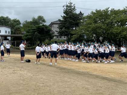 団活動の様子(青龍団) 公開日 2022/09/02 更新日 2022/09/02 体育大会 最後の団活動、どの団もグラウンド中央で通し練習を繰り返して、ぎりぎりまで修正を行っていました。いい仕上がりになっています。 明日の体育大会での団演技、みなさん楽しみにしていてください!