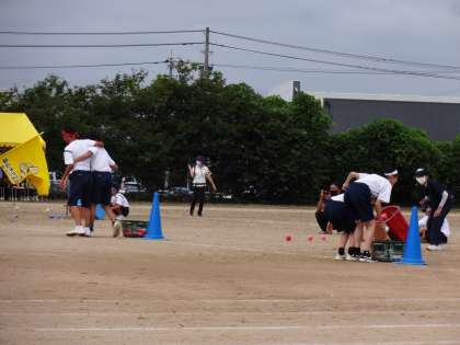 この競技は二人三脚をした後にボールを投げてかごに入れるというもので、速さと正確さが問われるおもしろい競技でした。