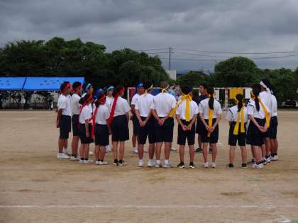 全ての競技が終了しても、閉会式に向けて団のリーダーたちと顧問の先生が細かな打合せをしています。