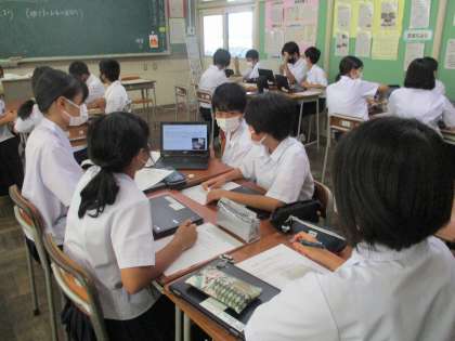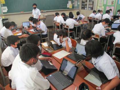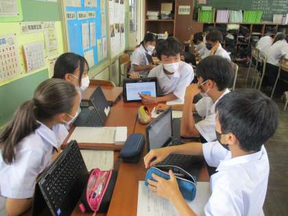 各自が決めたテーマについて調べたことを、夏休み中にクロムブックにまとめ、グループごとの発表会を行いました。