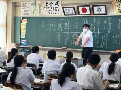 写真下:3年3組 4限 国語 「魯迅の『故郷』」