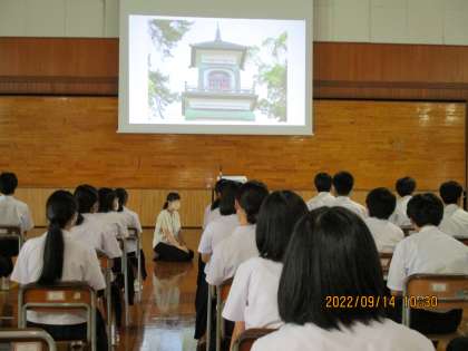 今日は金沢の宿泊学習にまつわる学年集会でした。