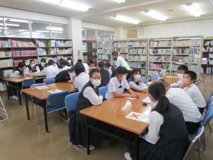 1年生・合唱コンクールに向けて 公開日 2022/09/22 更新日 2022/09/22 1年生 9月22日(木) 8:00 9月27日(火)から合唱コンクールにむけた練習が始まります。 練習がスムーズに行うために、各クラスの合唱リーダーたちが打ち合わせを行いました。 (写真:図書室で学級ごとに話し合っています)