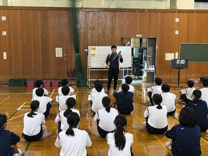 今日の3限、体育館で教育実習生の桑名先生が公開授業(2年3組)を行いました。