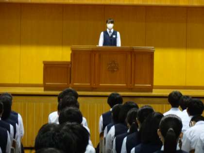新生徒会長は「みんなの意見を積極的に取り入れ、協力して、気力と活気あふれる興南中学校を目指して様々なことに挑戦していきたい」と力強く語りました。