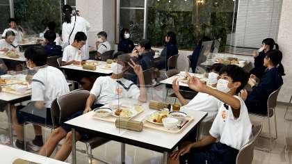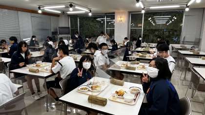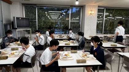 班別学習で美味しいものをたくさん食べてきたと思うのですが、出された食事をもりもり食べていました。
