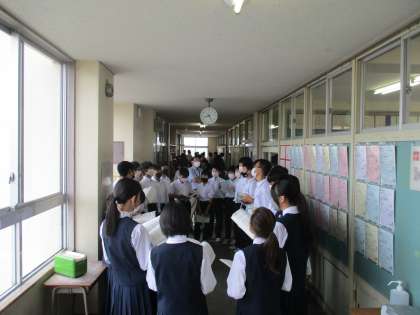 1年生 朝の合唱練習 公開日 2022/10/03 更新日 2022/10/03 1年生 今週は、朝と放課後の2回合唱練習ができます。歌声の響く、とても気持ちがよく活気のある朝となっています。1年生は初めての体験です。美しい歌声を作り上げようとがんばっています。