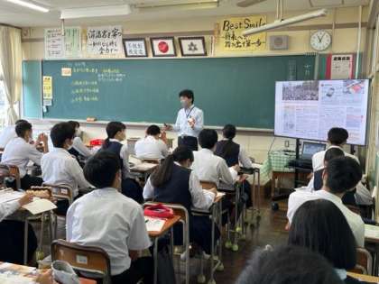 写真中:3年2組 社会 「自由権の中には財産権もあり、自分の財産が不当におかされない権利です」