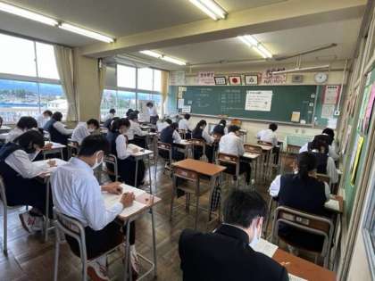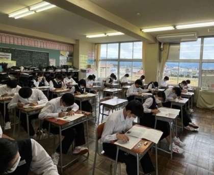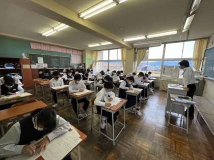 2年生の今日の科目は社会、国語、理科。2年生も一生懸命に問題に向かっています。