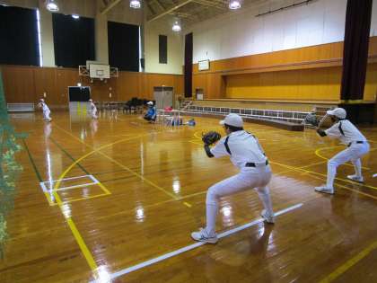 今日の練習風景です。ピッチングとキャッチングのフォームを確認しています。