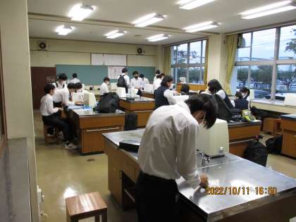 家庭科室では、展示する「マイエコバック」作成の追い込み作業をしていました。上手にできたかな?