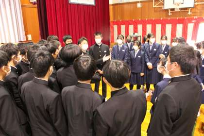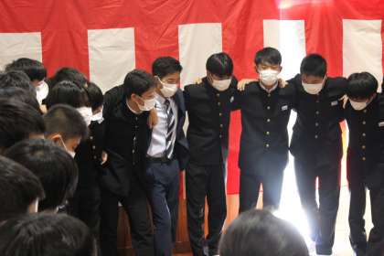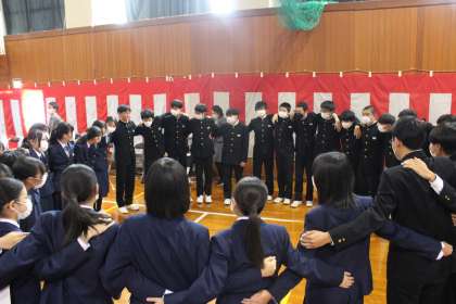3年生は本番前に各クラスで気合いを入れて臨みました。 これまでの練習の成果を込めて、精一杯歌います。