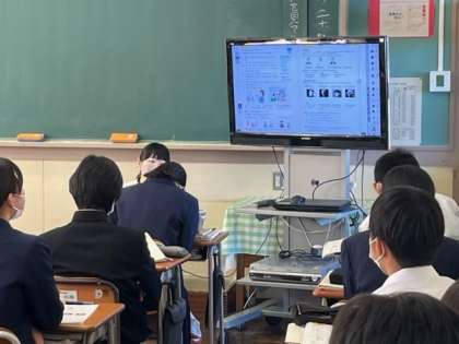 写真中:3年2組 英語 「Do you knouw what Marie Curei did?」