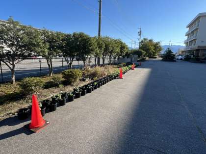 生徒玄関前には、3年生が技術科の学習で行っている鉢植えが並んでいます。