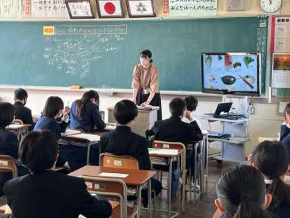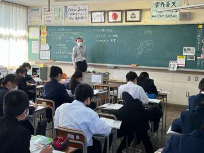 写真下:1年3組 社会 「キリスト教にもいろいろ宗派があってね・・・」