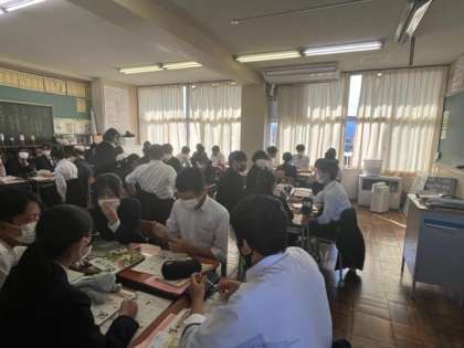 写真下:3年3組 数学 「このプリントに同じ形で2倍の図形を書いてみましょう」