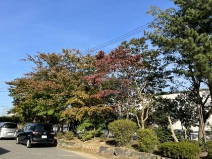 もうすぐ11月。気づくと前庭の樹木が紅く色づいています。