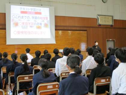 10月31日(月)から始まるテキスト学習についての学年集会がありました。