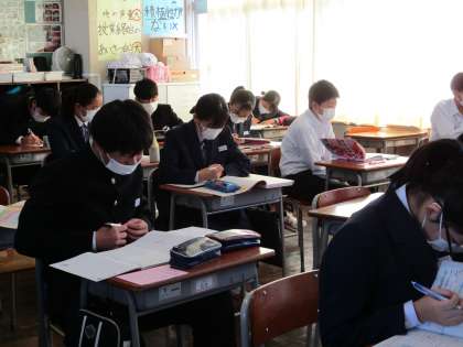 テキスト配布 公開日 2022/10/29 更新日 2022/10/29 2年生 10月28日(金) 2限 学年集会の後、5教科のテキストとノートが配られました。 1冊1冊に名前を書き、提出の仕方等の説明があった後、子供達は早速取り組んでいました。 11月8日(火)と9日(水)には中教研テストがあります。 範囲表を見て、テキストで勉強するのも一つの手ですね。 (写真 上:2年1組) (写真 中:2年2組) (写真 下:2年3組)
