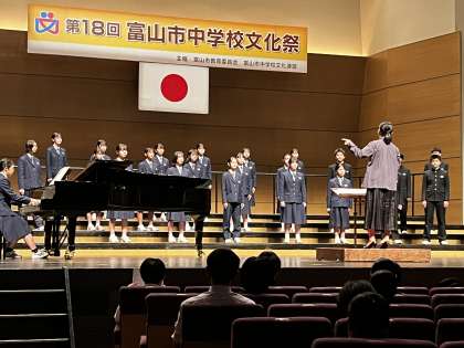 富山市中学校文化祭 その1 公開日 2022/10/29 更新日 2022/10/29 今日の興南中 10月29日(土) 本日、富山市芸術文化ホールで「富山市中学校文化祭」が開催され、音楽発表に合唱部が出演しました。 強いメッセージが込められた「OH MY SOLDIER」とアップテンポで爽快感あふれる「なないろ」という2つの曲が、興南中合唱部の心が一つになった声の束となって、観衆を魅了しました。 素晴らしい合唱でした。