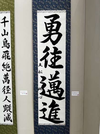 写真は、新聞部門、書道部門、手芸・被服部門の展示です。