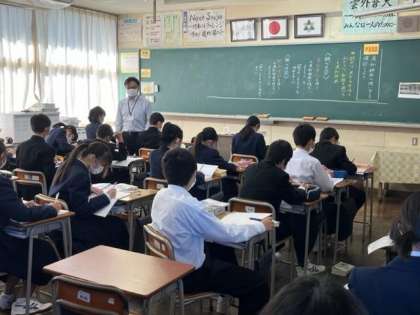 写真中:1年2組 社会 「関税がなくなるとどうなりますか?」