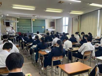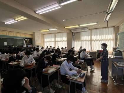 写真上:3年1組 音楽 「『帰れソレントへ』はイタリアのカンツォーネです。」