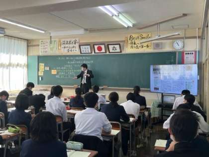 写真中:3年2組 社会 「衆議院は参議院より強い権限が与えられています。」