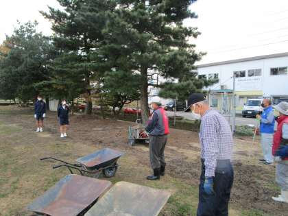 放課後、美化実践部は教育後援会、新保・熊野地区の方々とともにフラワーロードの整備を行いました。