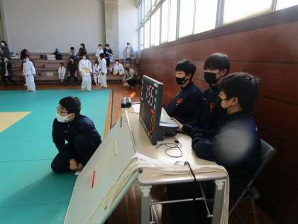 柔道部は富山県営武道館で行われた「富山市スポーツ少年団新人交流大会」の補助役員として大会の運営を手伝いました。